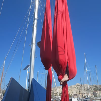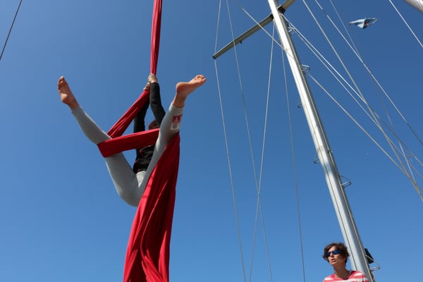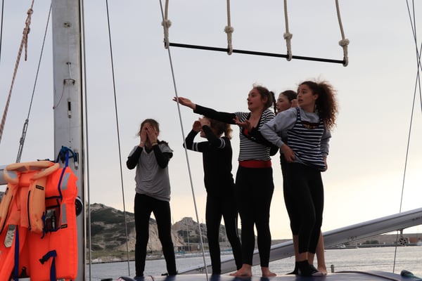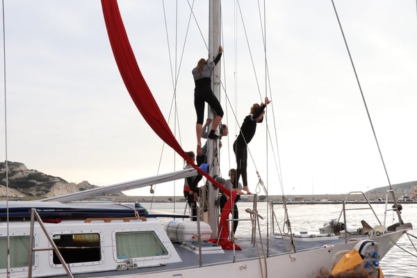 Depuis 2017, Chamboul'tout a développé des stages d'aérien dans un lieu et avec un support insolite: la goélette Bazar sur l'archipel du Frioul.