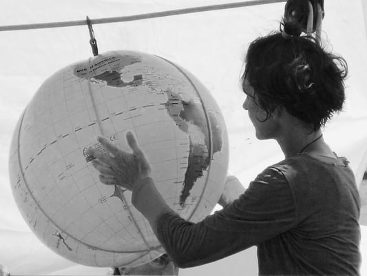 L'exploratrice s'engage dans l'aventure et interroge dans son sillage la frontière...